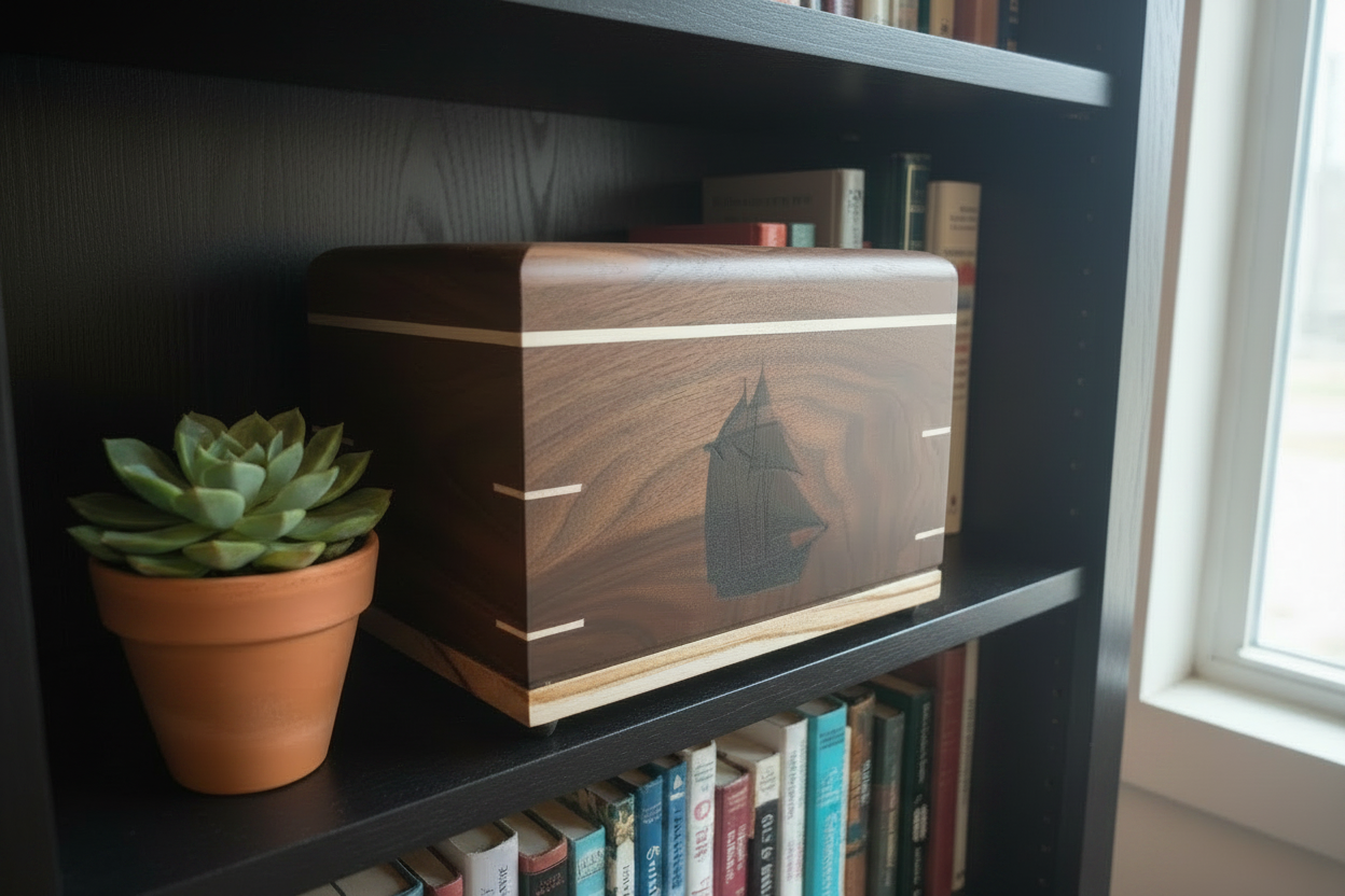 Custom wooden cremation urns crafted from solid hardwood - designed to honor your loved one with care, meaning and lasting quality.