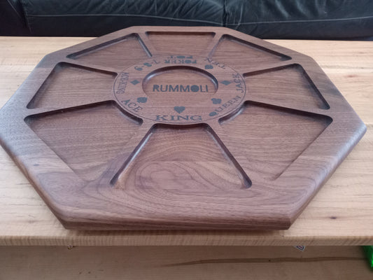 Handcrafted Wood Rummoli game boards. Lazy Susan option.