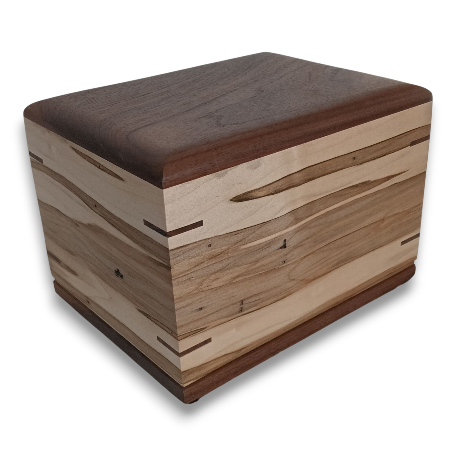 The Urn is handcrafted from solid sustainable hardwood and finished in all natural oils. Can be displayed proudly, placed in a Columbarium, or buried.