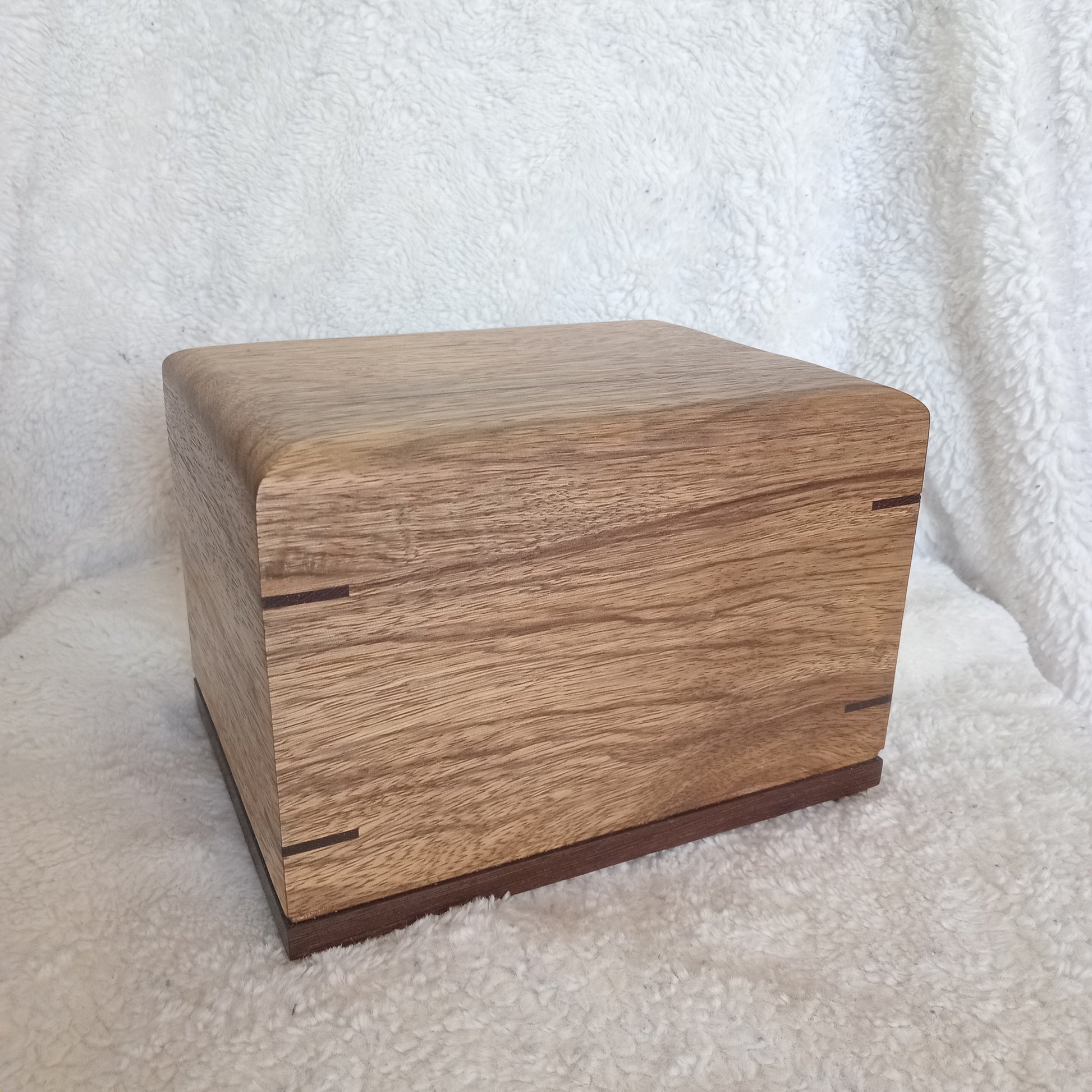 Handcrafted from sustainable hardwoods and finished in all natural oils. Can be displayed, placed in a Columbarium, or buried.