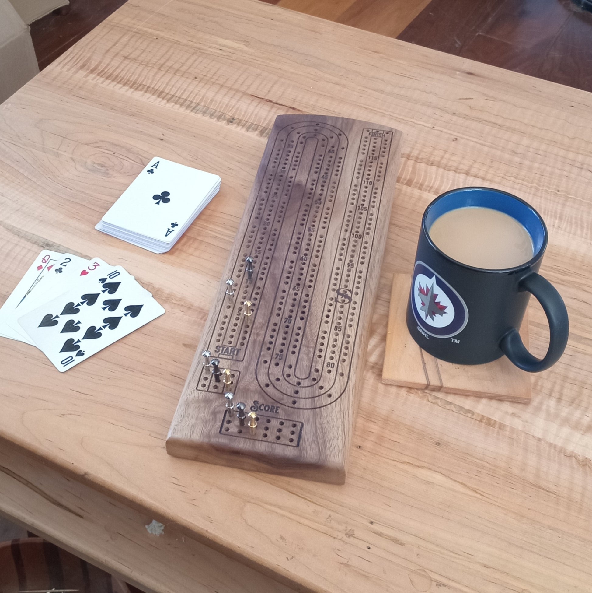 Our custom wood cribbage boards are made from solid hardwoods like maple, walnut, and cherry – each one unique in grain and character. The Standard wood board is the beautiful Ambrosia Maple. Whether it’s game night at the cabin or a quiet evening by the fire, these boards bring families together.