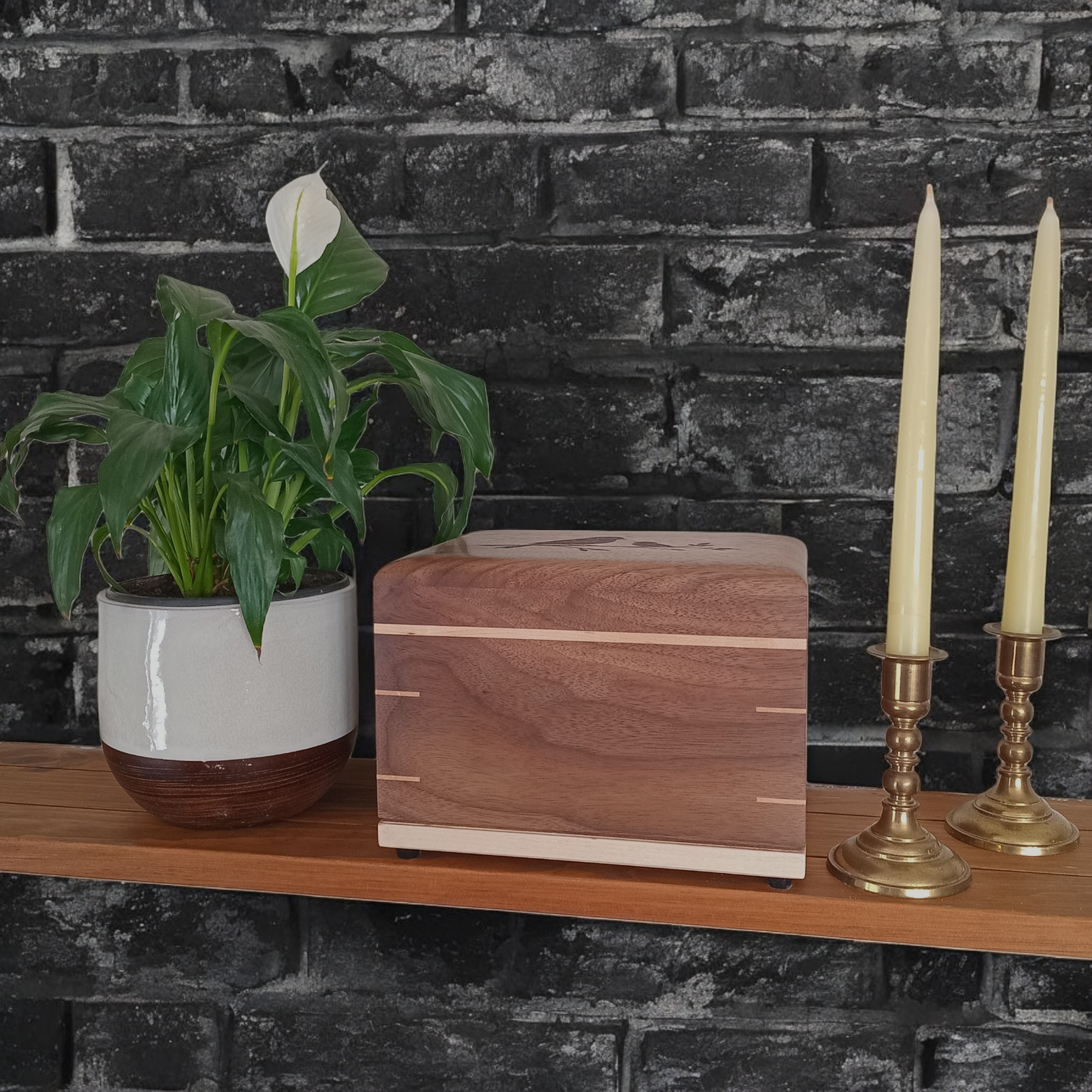 Each True North urn is made by hand in Canada from premium sustainable woods like Black Walnut, Ambrosia Maple, Rustic Hickory, or Tennessee Red Cedar — each offering rich grain and natural warmth that feels comforting and respectful.